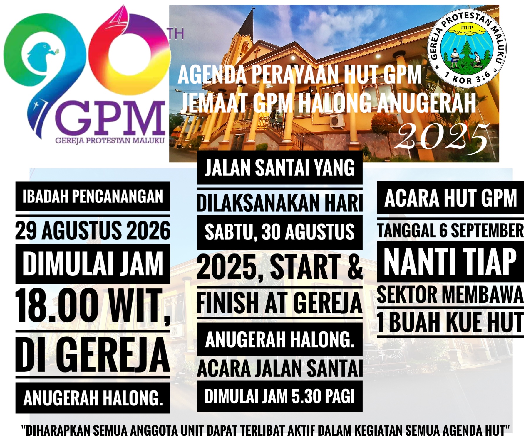 Salam sejahtera dalam kasih Tuhan kita Yesus Kristus, Puji dan syukur kita panjatkan kepada Tuhan yang telah menyertai perjalanan pelayanan Gereja Protestan Maluku (GPM), khususnya Jemaat GPM Halong Anugerah, hingga saat ini. Dengan penuh sukacita kami menyambut kehadiran saudara/i di website resmi jemaat ini — sebuah ruang digital yang kami hadirkan sebagai wujud keterbukaan informasi, pelayanan, dan komunikasi antara gereja dan jemaat, serta masyarakat umum.